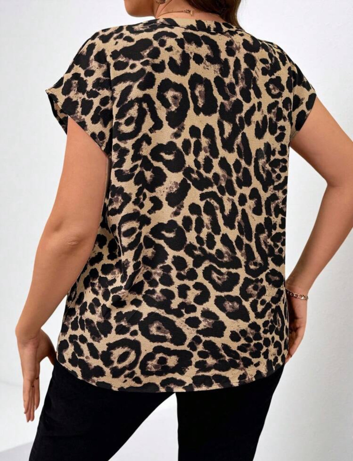 #2853 Leopard Print V-Neck Short Sleeve Elegant Top