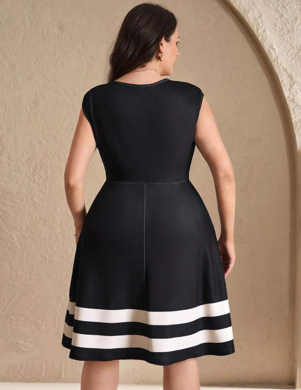 #3035 Elegant A-Line Knee-Length Contrasting Hem Dress