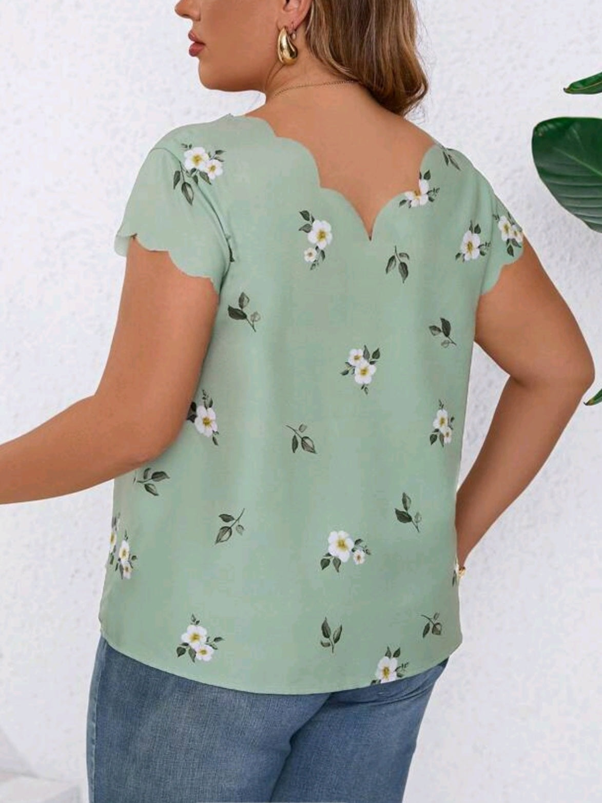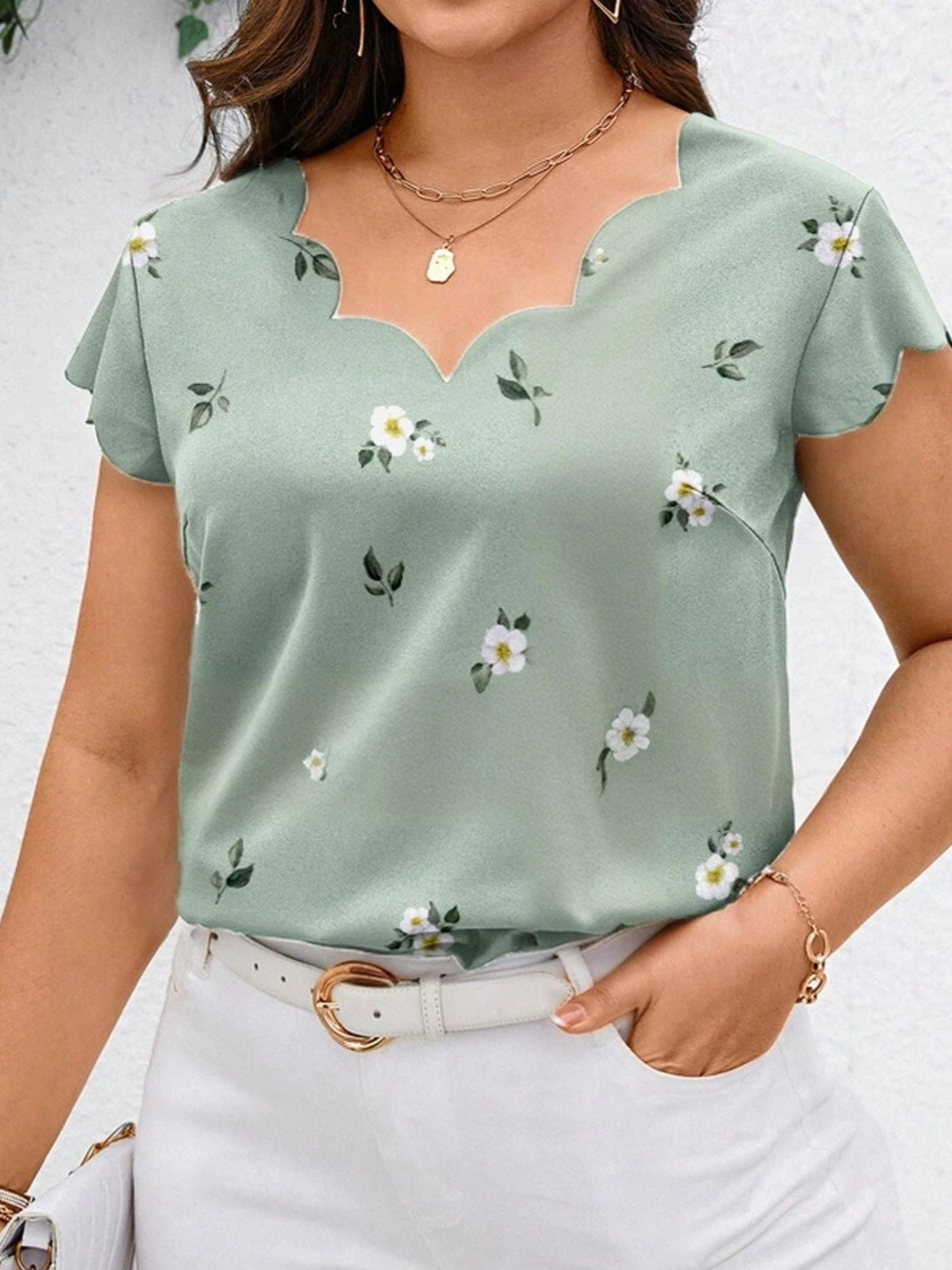 #3129 Shell Edge Flower Print Short Sleeve Shirt