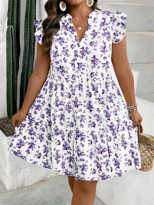 C#4616 Fairy Ditsy Floral Cap Sleeve Casual Mini Dress